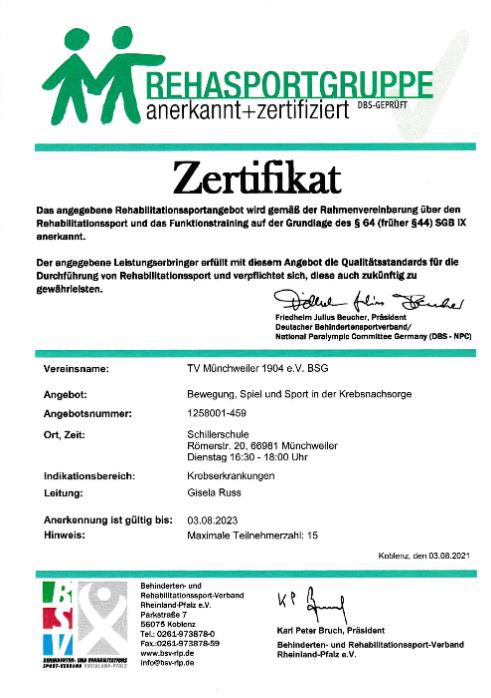 So bietet die Sportgruppe unseren Teilnehmerinnen und Teilnehmern die Möglichkeit, diese Bewegungseinschränkungen zu vermindern und ihre körperliche Leistungsfähigkeit zu verbessern und somit das Vertrauen in den eigenen Körper wieder zu gewinnen.